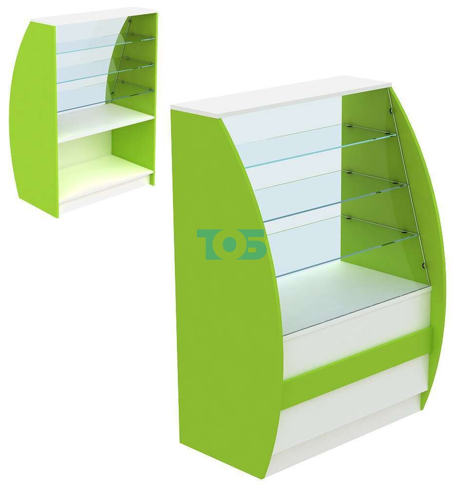 - аптечный прилавок серии БРИЗ из ламинированного ДСП и стекла надежен и удобен в использовании. Он изготавливается из современных и качественных материалов, также способен максимально выгодно представить ассортимент аптечного товара. Прилавок имеет плавный полукруглый фасад и используется как модуль первой линии в торговом зале аптеки;
