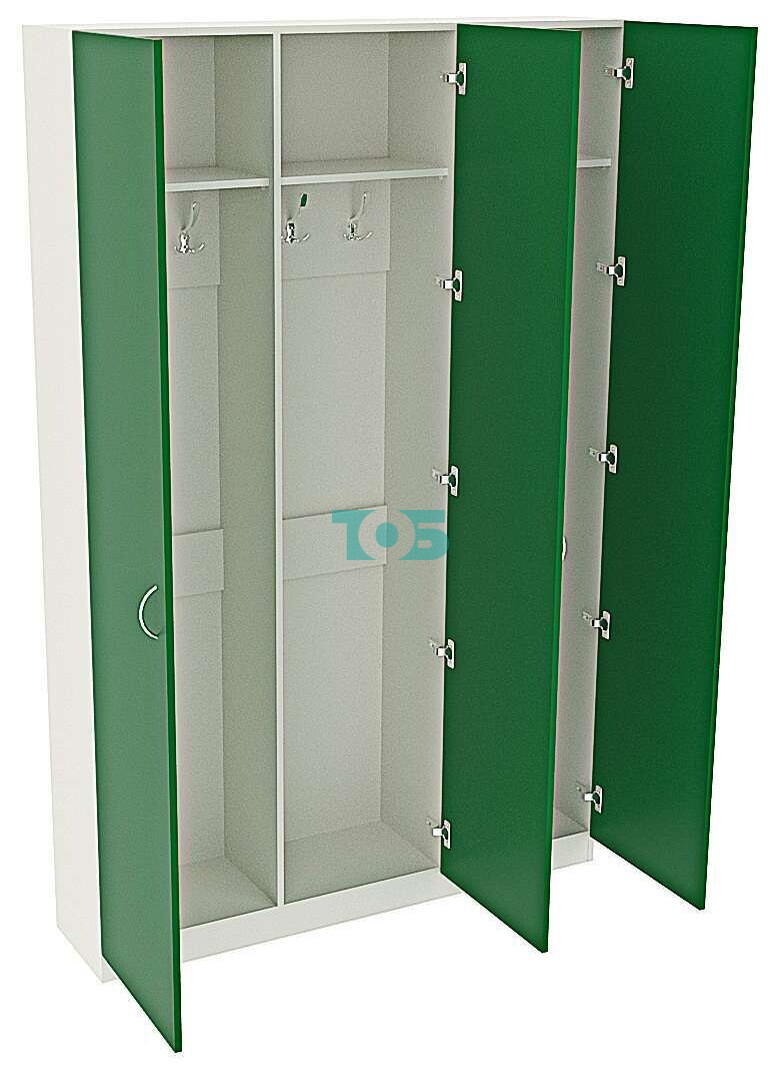 Отличие модели аптечного шкафа одежды персонала для трёх человек серии ИЗУМРУД №3: