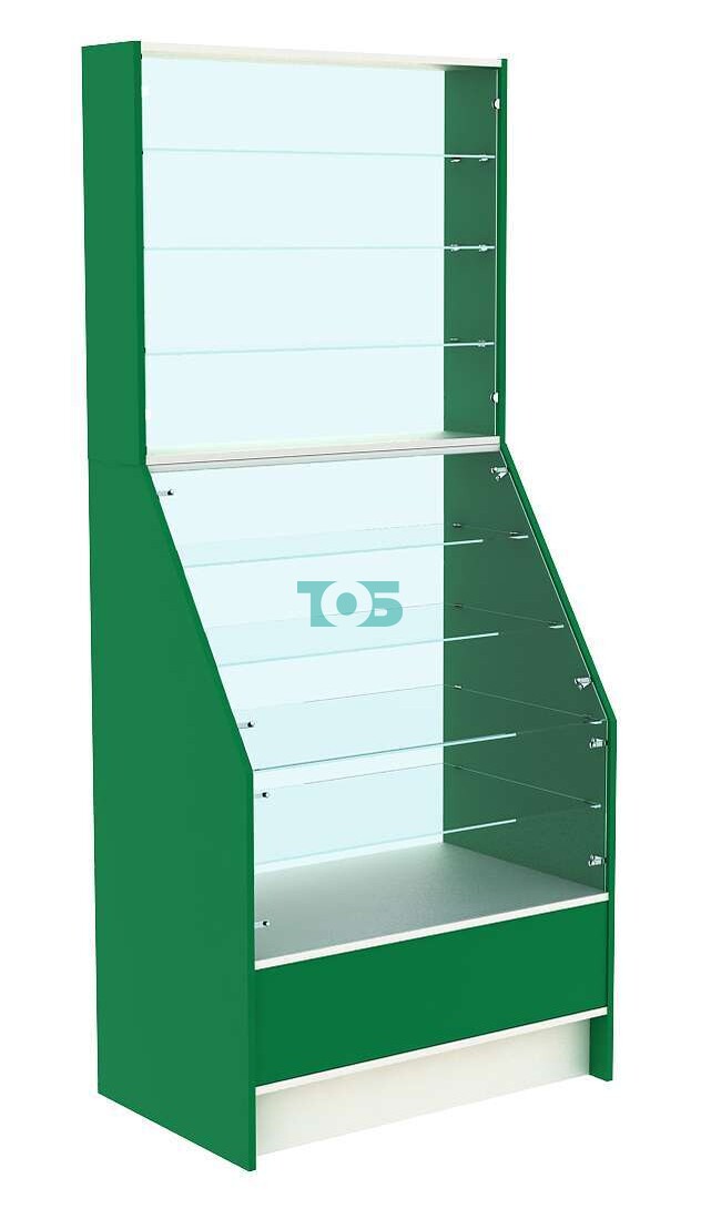 - в верхней части витрины три стеклянные полки, глубиной 180 мм, с равномерным расстоянием между полками 185 мм;