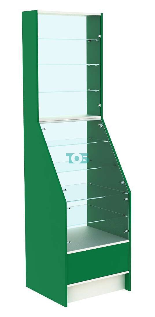 - четыре стеклянные полки, расположенные "лесенкой", глубиной 300-416-535-535 мм;