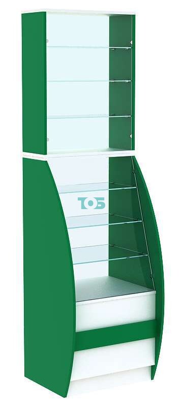 - аптечная витрина имеет оригинальный дизайн с плавными формами каркаса;