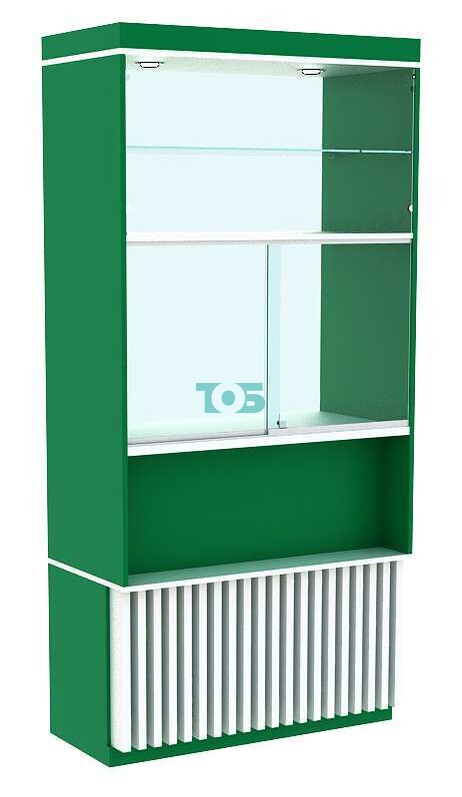 - Новая линия аптечных витрин первой линии серии ВЕРТИКАЛЬ - ИЗУМРУД выполнена в комбинации цветов Белый + ИЗУМРУД. Який дизайн витрине придают вертикальные планки толщиной 25мм, которые могут быть выполнены в разных цветах. Внешний вид витрины привлекает внимание Покупателя красивым видом и нестандартной конфигурацией. Идеально подходит для аптек любой площади. Использовать в конструктиве аптечной витрины можно самые разные дополнительные цвета ламинированного ДСП по желанию Клиента;