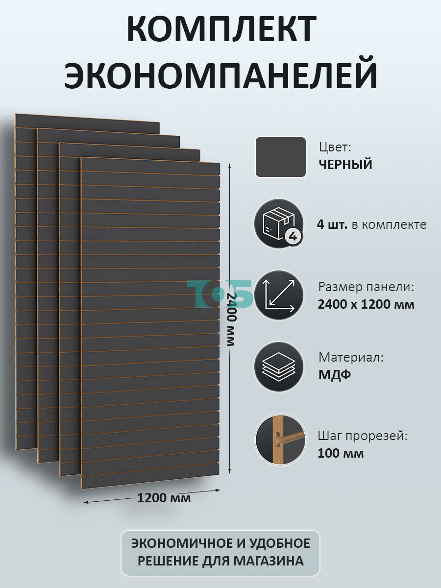 Экономпанель Черная 1200 x 2400 мм - 4шт: