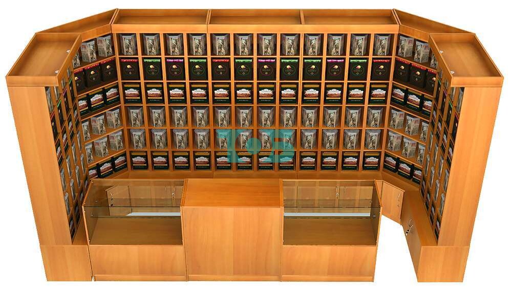 - Стеллажи имеют 24 отсека, верхний фриз с подсветкой.
