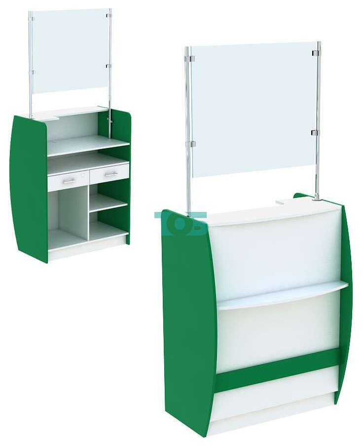 Отличия модели кассового прилавка с экраном для аптеки ИЗУМРУД-КПБ-1Э: