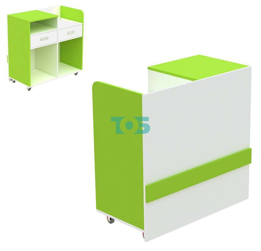 Прилавок изготавливается из современных и качественных материалов, также способен максимально выгодно представить ассортимент аптечного товара. Прилавок используется как кассовый модуль первой линии в торговом зале аптеки;