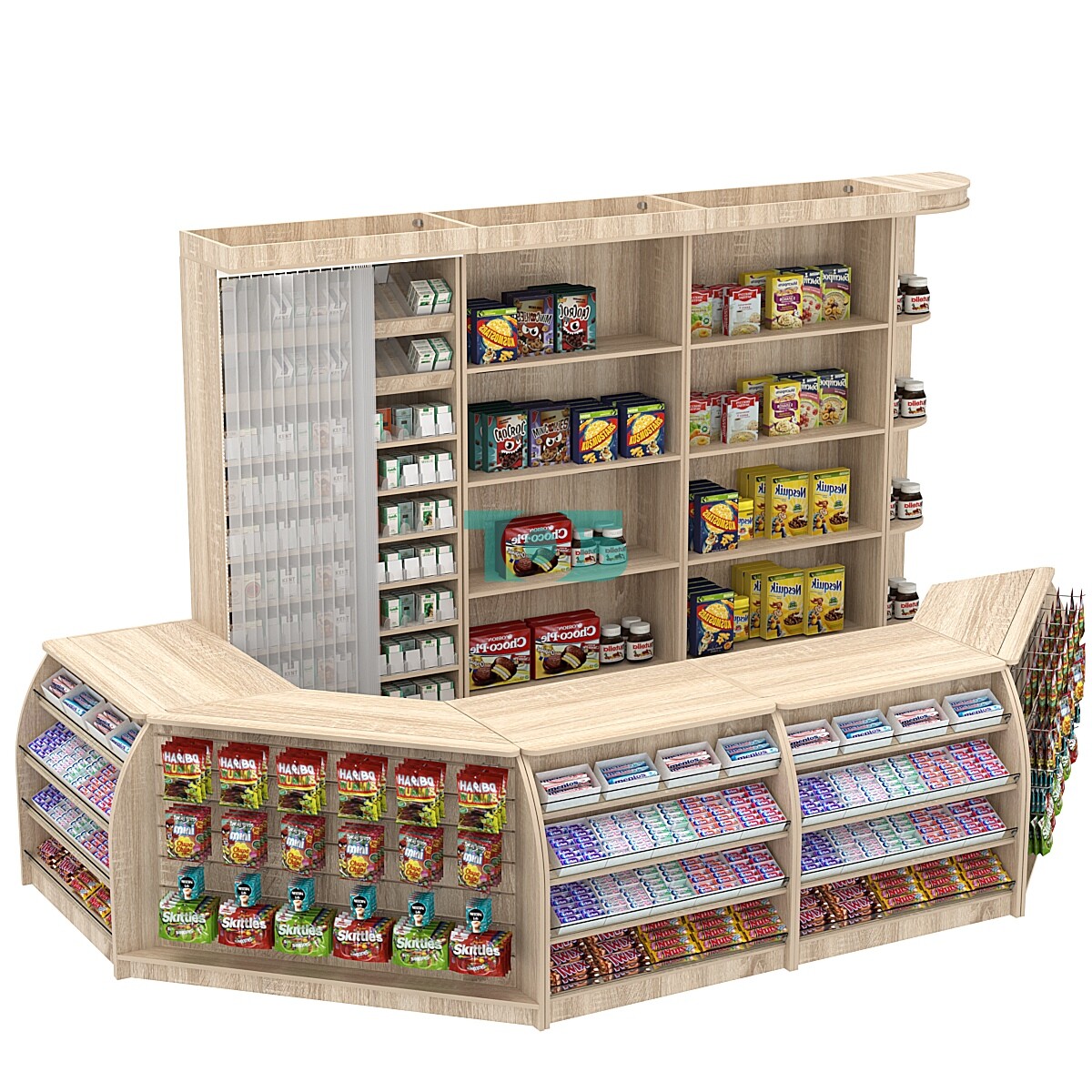 - готовый комплект торговой мебели для кассовой зоны предназначен для быстрого и функционального размещения торгового оборудования для продавца в магазине;