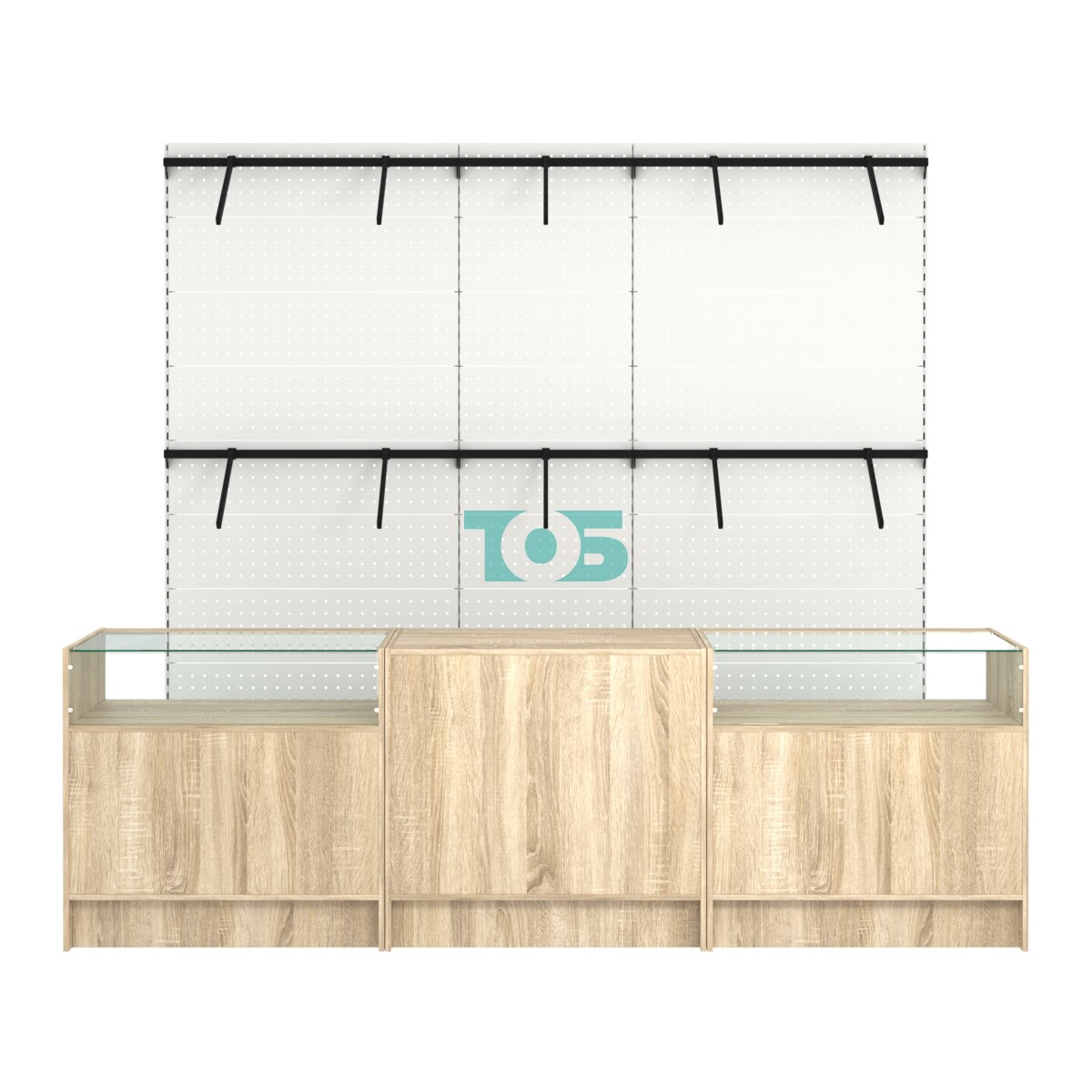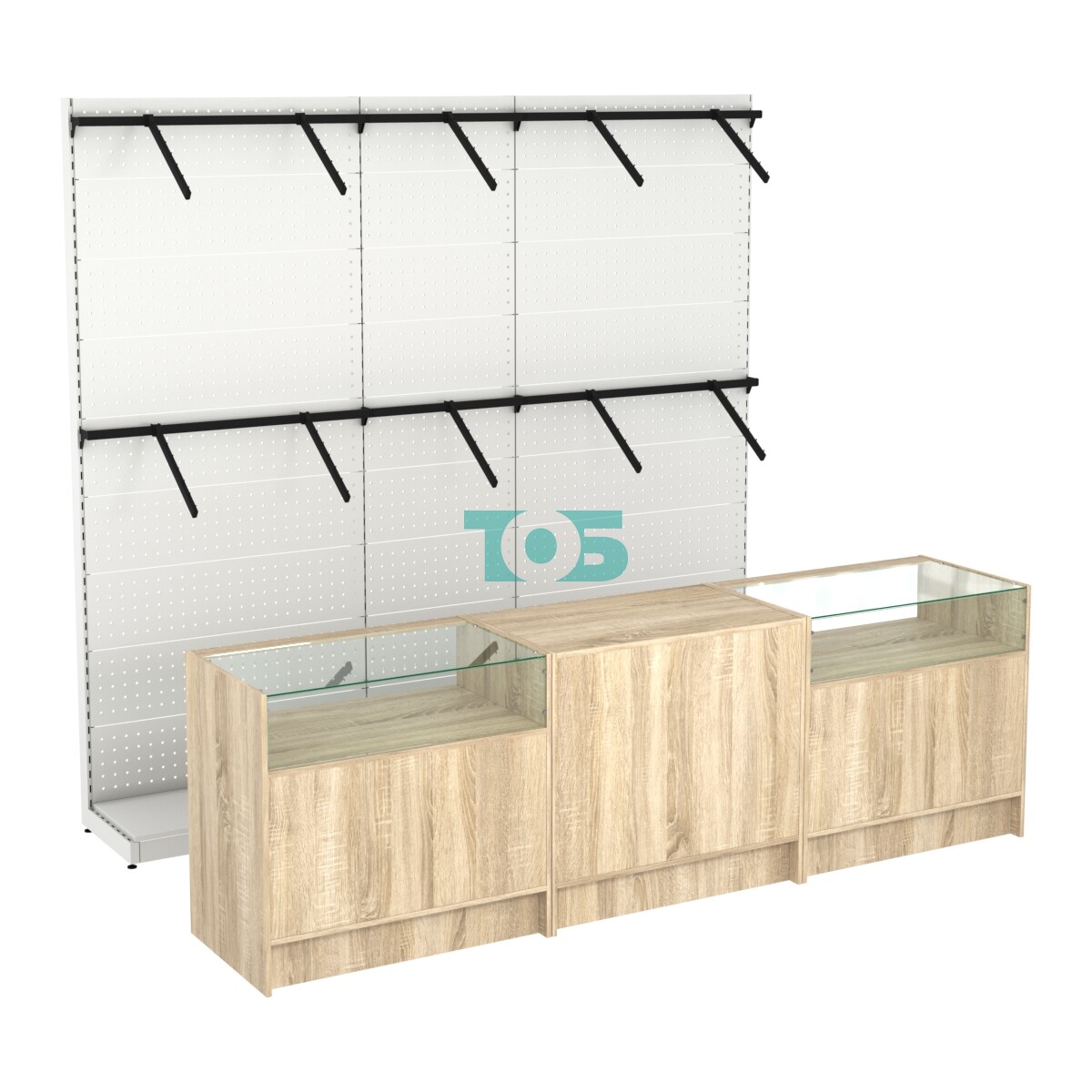 - ширина комплекта 2700мм указана по габариту внешних прилавков, стеллажи на второй линии шириной 2600мм;