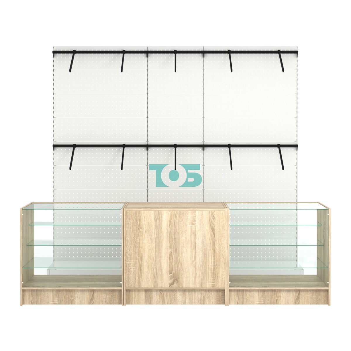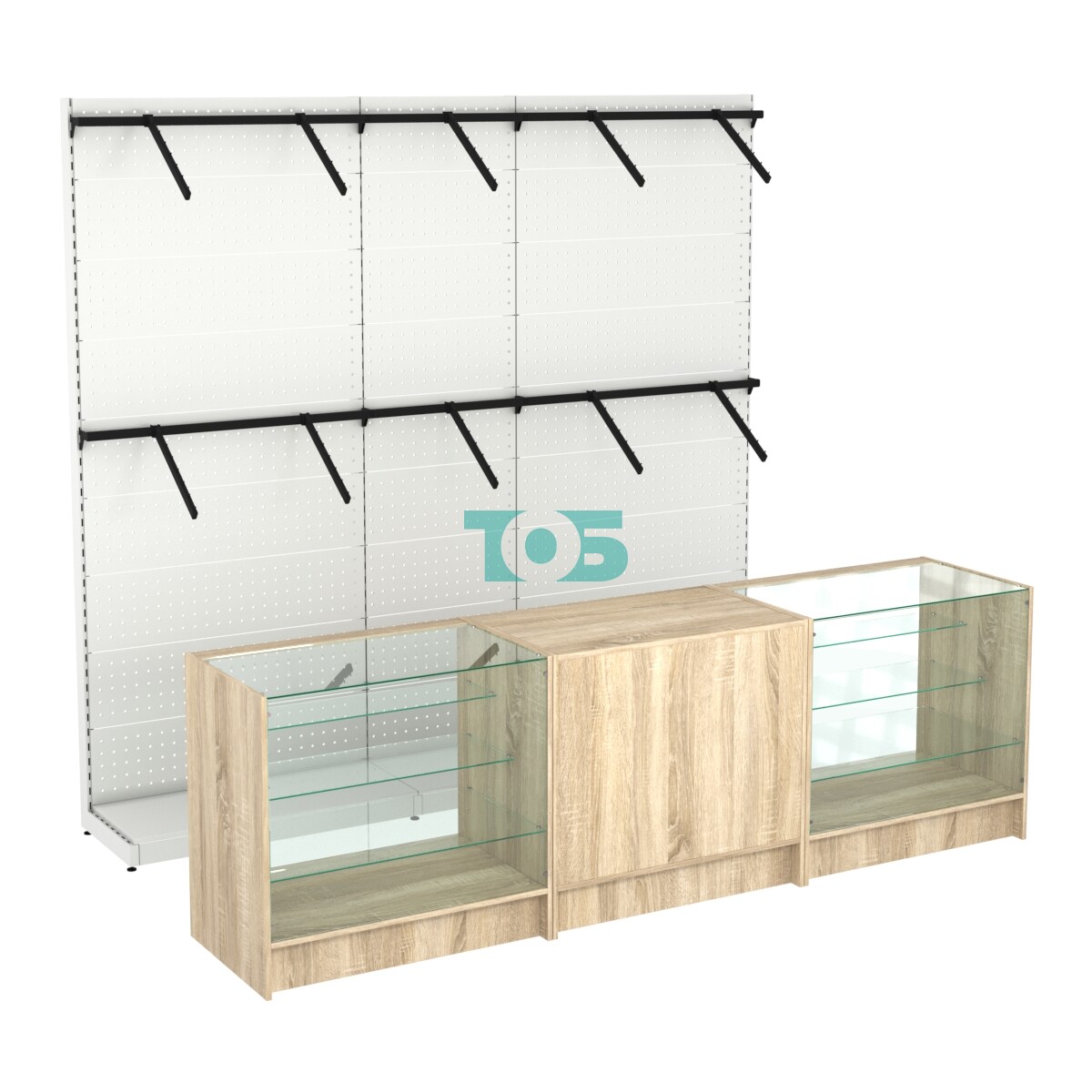 - ширина комплекта 2700мм указана по габариту внешних прилавков, стеллажи на второй линии шириной 2600мм;