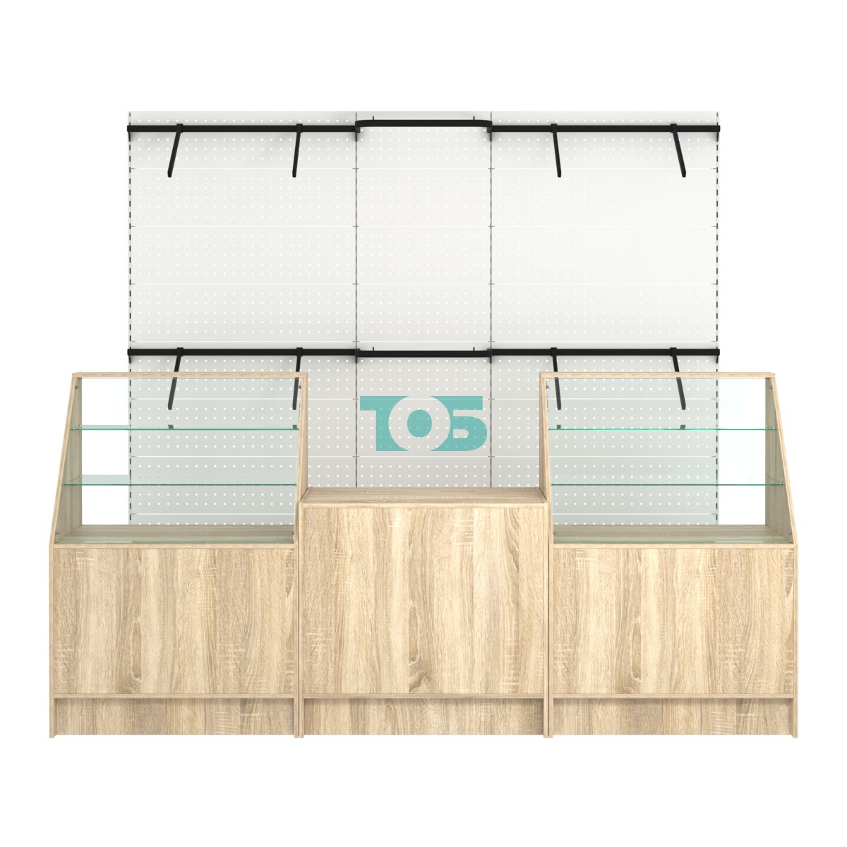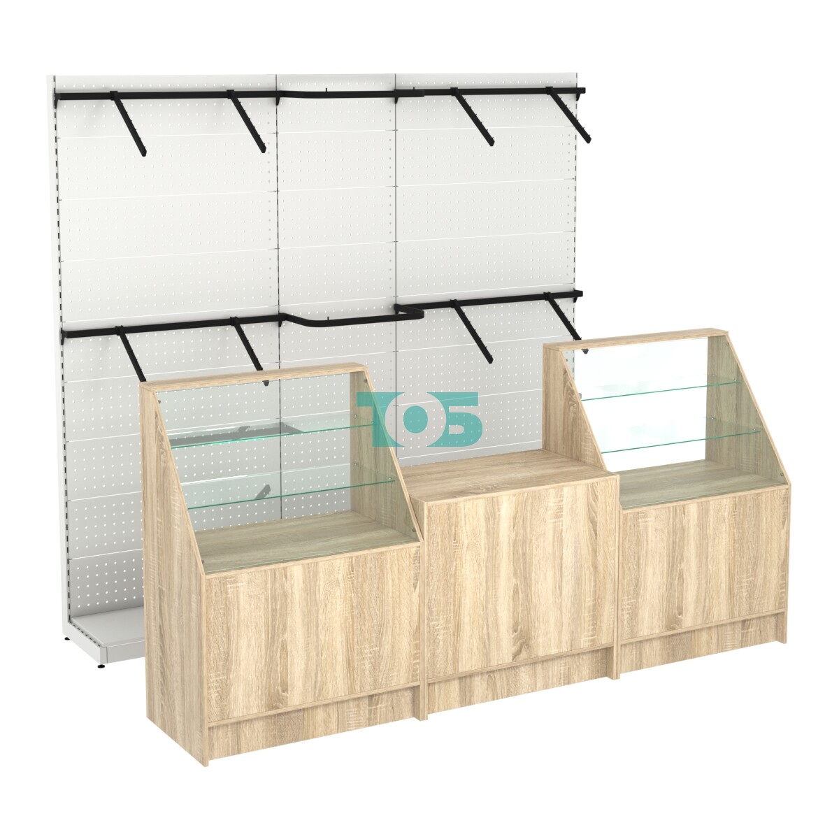 - ширина комплекта 2700мм указана по габариту внешних прилавков, стеллажи на второй линии шириной 2600мм;