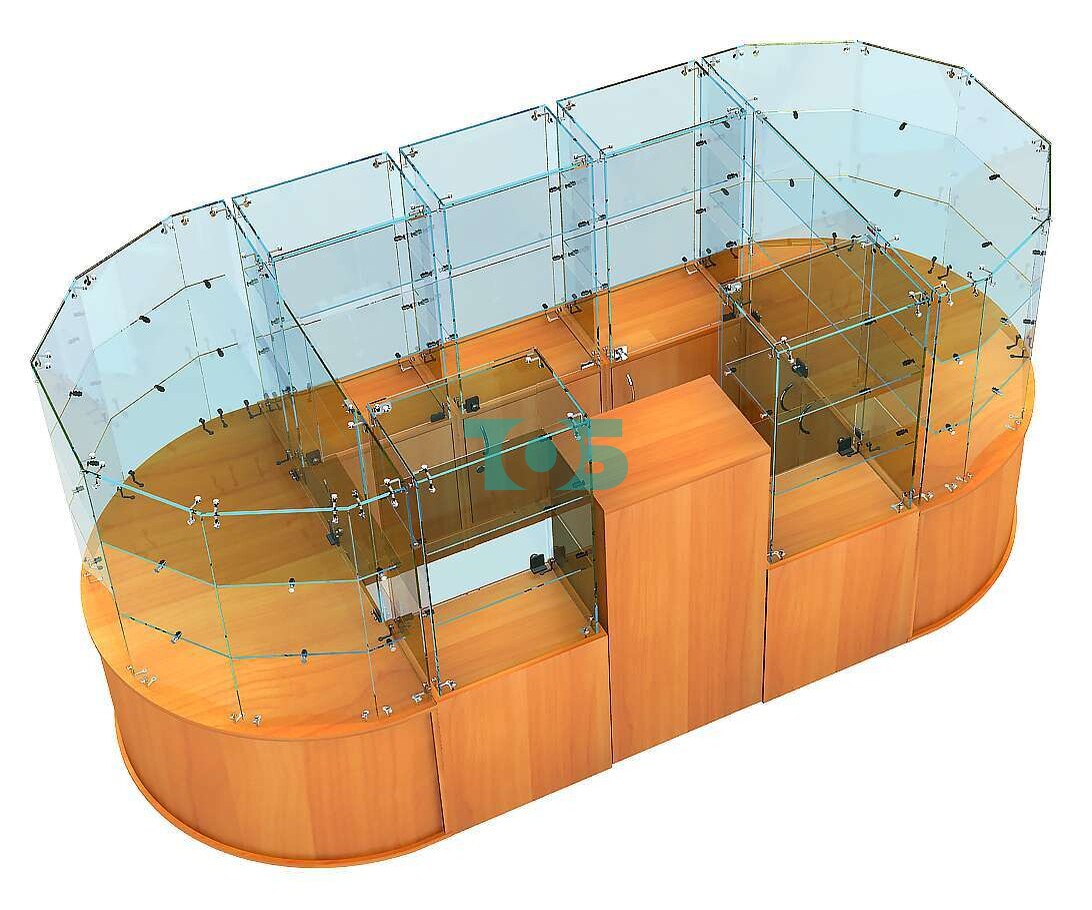 Отличия модели круглого стеклянного островка-павильона серии КОЛЬЦО овального №2: