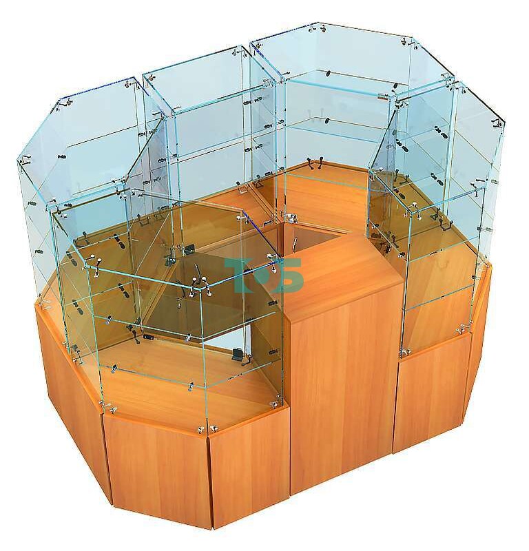 Отличия модели стеклянного островка-павильона серии КОЛЬЦО шестигранного №4:
