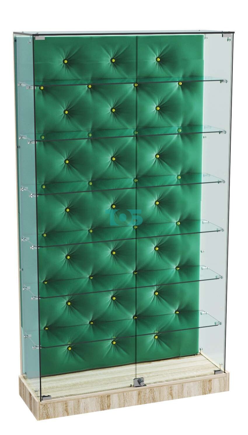 - задняя стенка витрины декорирована обивкой из велюра ЗЕЛЕНЫЙ БАРХАТ, карета с золотыми втулками;
