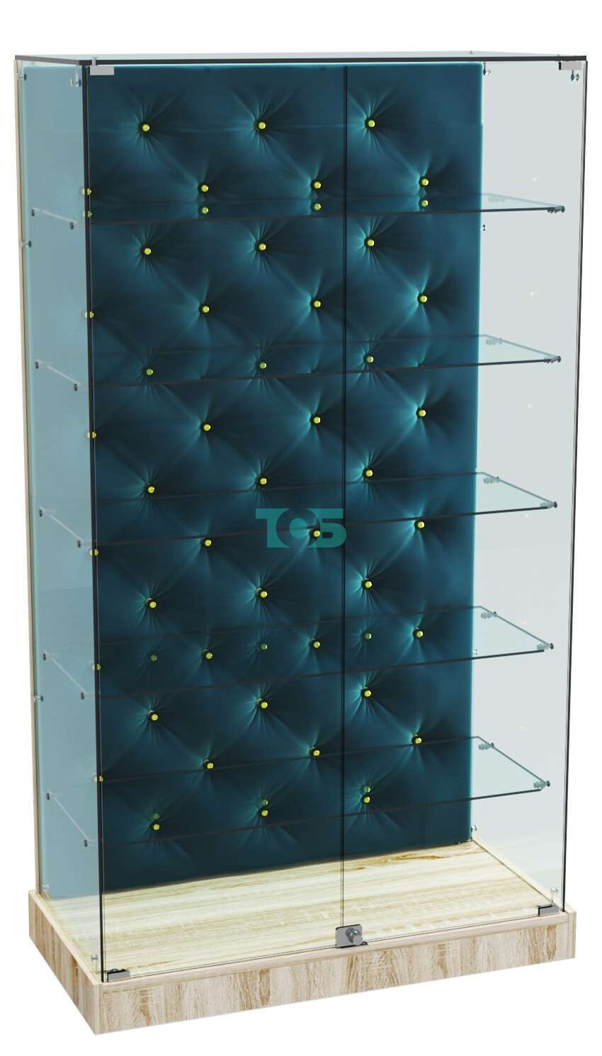 - задняя стенка витрины декорирована обивкой из велюра СИНИЙ БАРХАТ, карета с золотыми втулками;