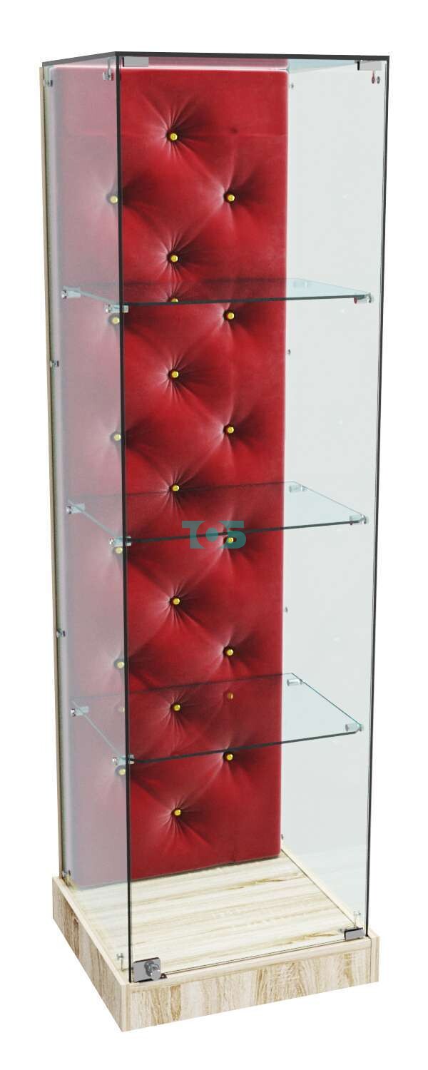 - задняя стенка витрины декорирована обивкой из велюра КРАСНЫЙ БАРХАТ, карета с золотыми втулками;