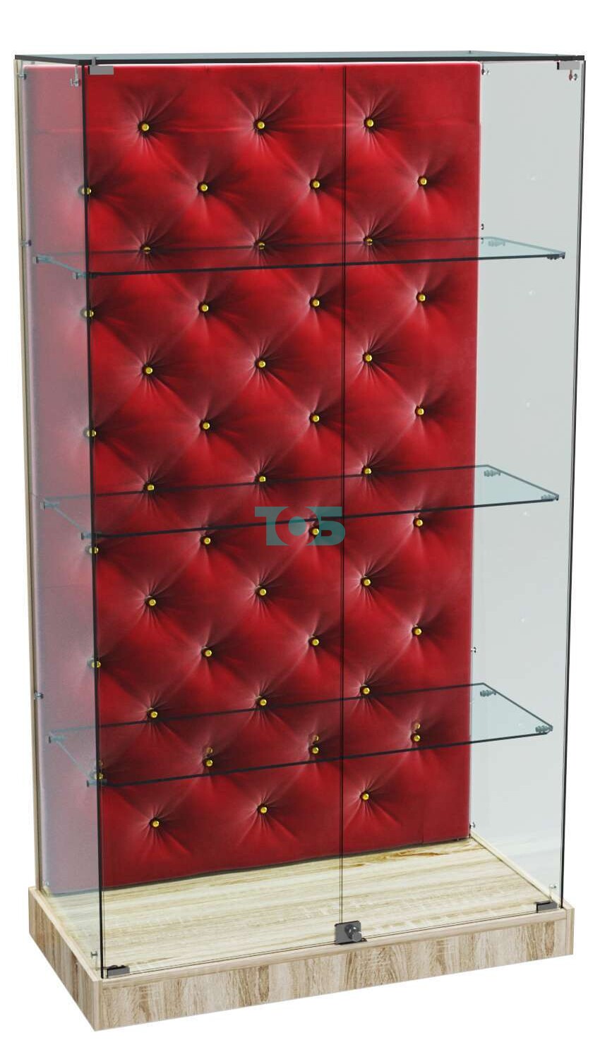 - задняя стенка витрины декорирована обивкой из велюра КРАСНЫЙ БАРХАТ, карета с золотыми втулками;