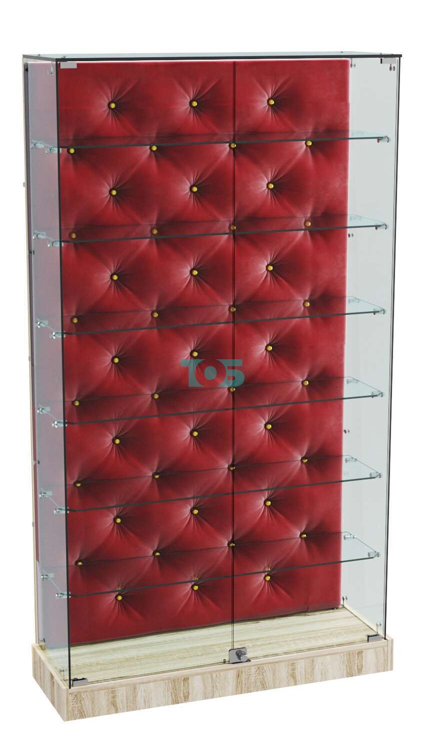 - задняя стенка витрины декорирована обивкой из велюра КРАСНЫЙ БАРХАТ, карета с золотыми втулками;