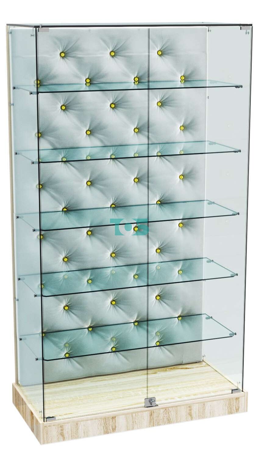 - задняя стенка витрины декорирована обивкой из велюра БАРХАТ ELEPHANT, карета с золотыми втулками;