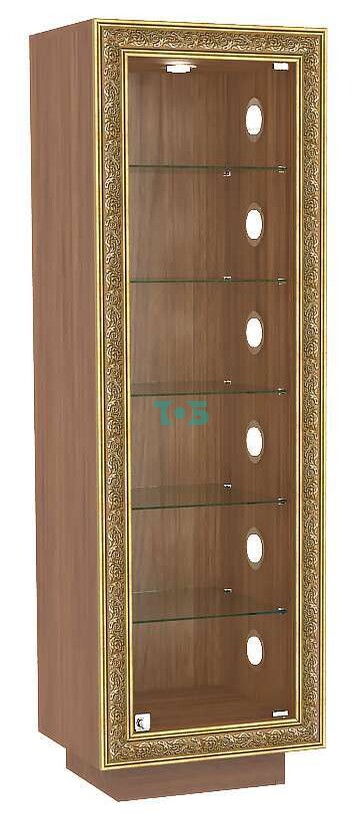 Фасадная часть: декорирована цветными молдингами под золото, которые подчёркивают чёткость линий и помогают вписать витрину в интерьер любого стиля.