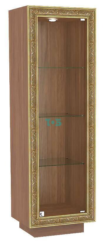 - фасад витрины украшен цветными декоративными молдингами под золото;
