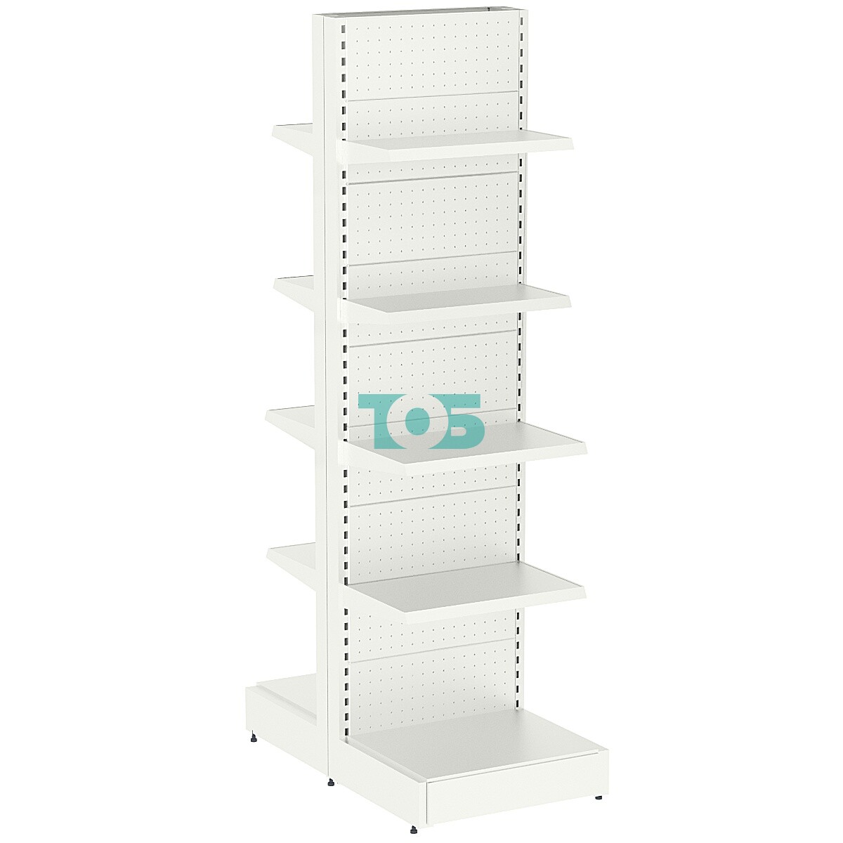 - стеллаж островной, полки расположены по обеим сторонам;