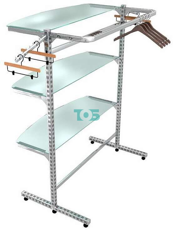 - трех закругленных стеклянных полок 6 мм размером 1200 х 350 мм;