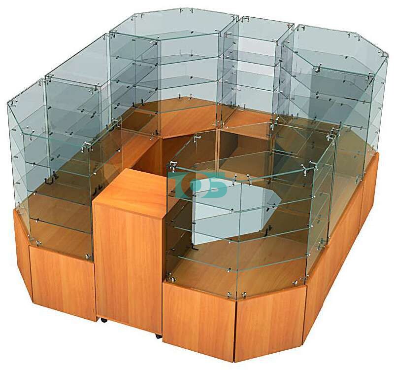 Габаритные размеры: могут быть изменены в зависимости от стандартных блоков витрин, что даёт возможность адаптировать павильон под конкретные условия и требования.
