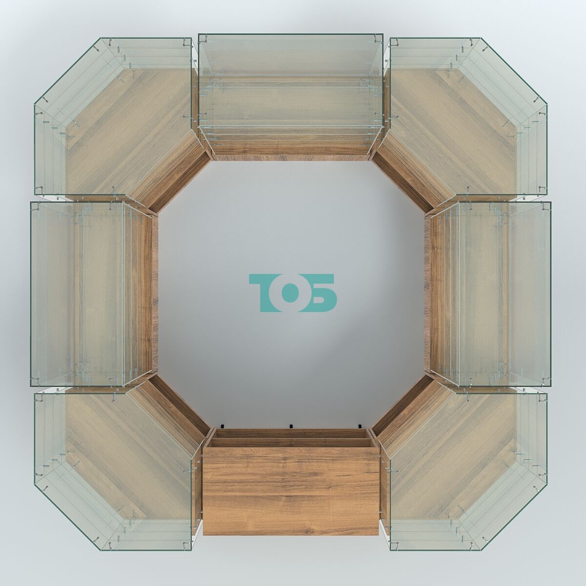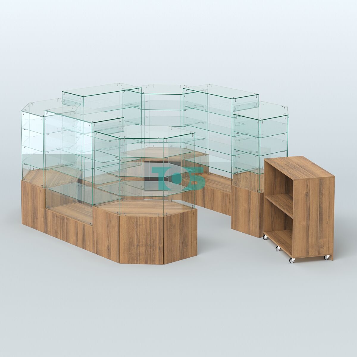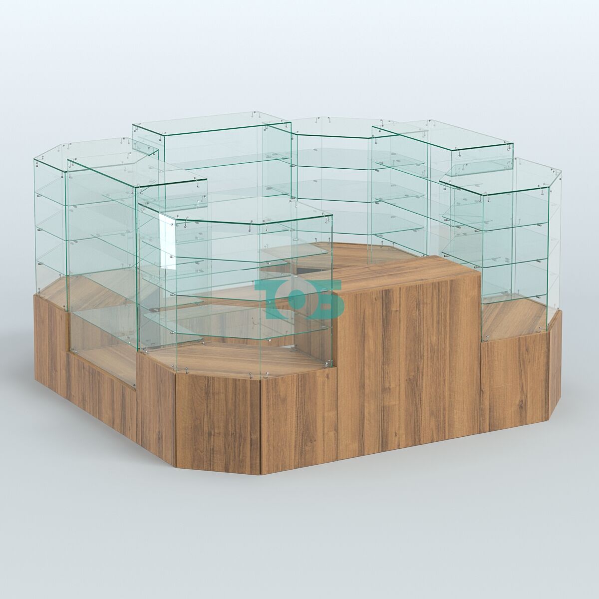 Высота павильона: предусмотрено сочетание высот на 1390 мм и 1310 мм, что позволяет гибко организовать пространство и оптимизировать размещение товаров.