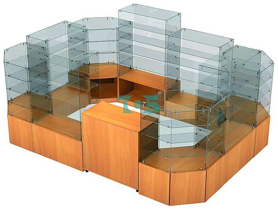 Витрины: со стороны продавца витрины открытые, что обеспечивает удобный доступ к товарам и их презентацию покупателям.