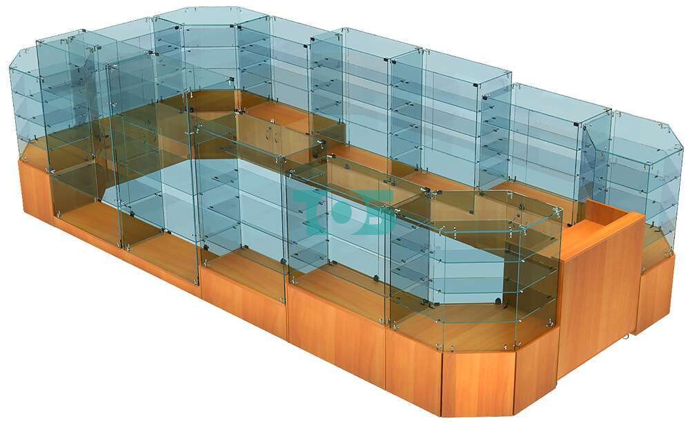 Витрины: со стороны продавца закрытые, что обеспечивает дополнительную защиту товаров и возможность их безопасного хранения.