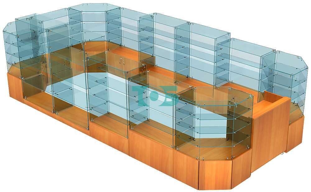Витрины: со стороны продавца открытые, что обеспечивает удобный доступ к товарам и их презентацию покупателям.