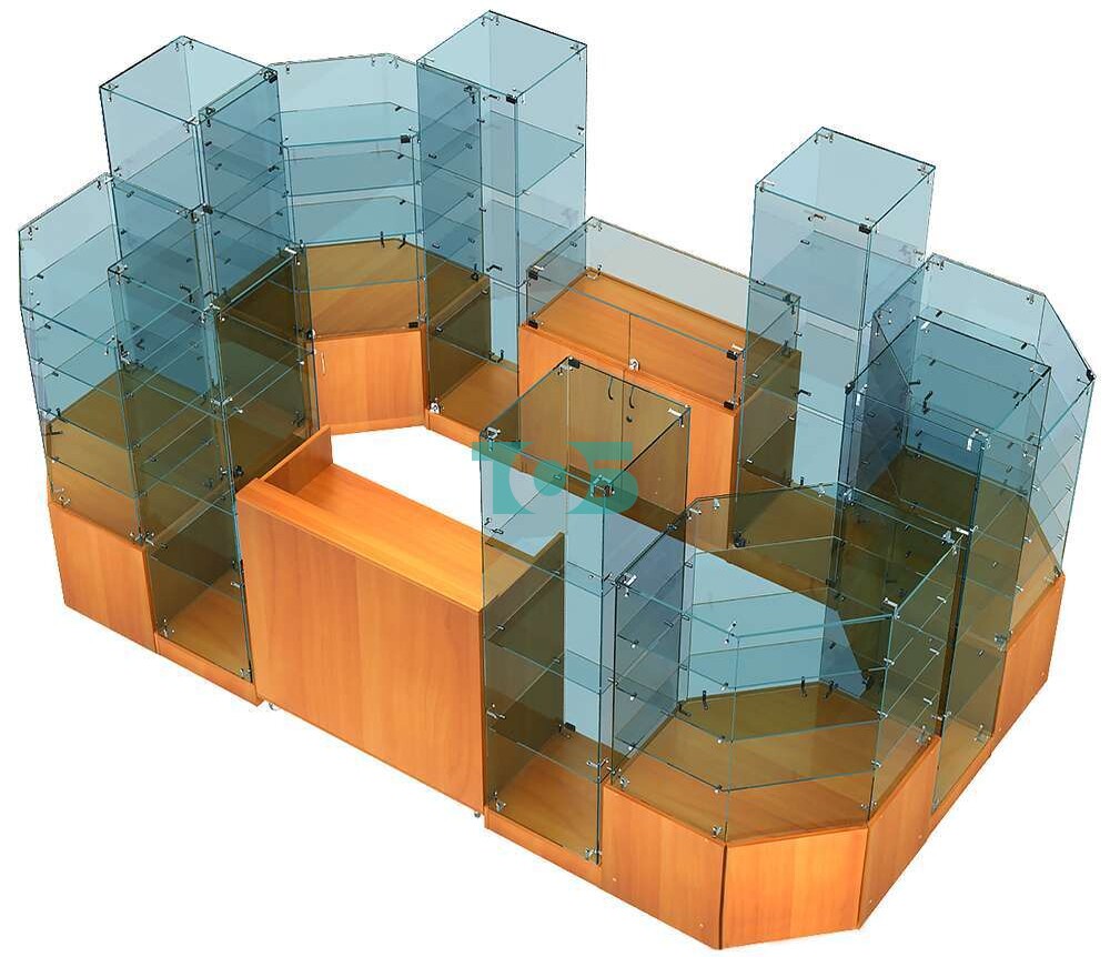 Витрины: со стороны продавца витрины закрытые, что обеспечивает дополнительную защиту товаров и возможность их безопасного хранения.
