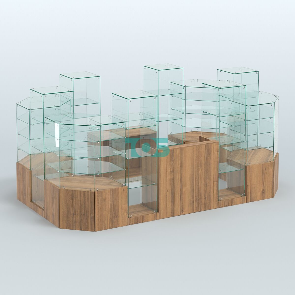 Габаритные размеры: могут быть изменены в зависимости от стандартных блоков витрин, что даёт возможность адаптировать павильон под конкретные условия и требования.