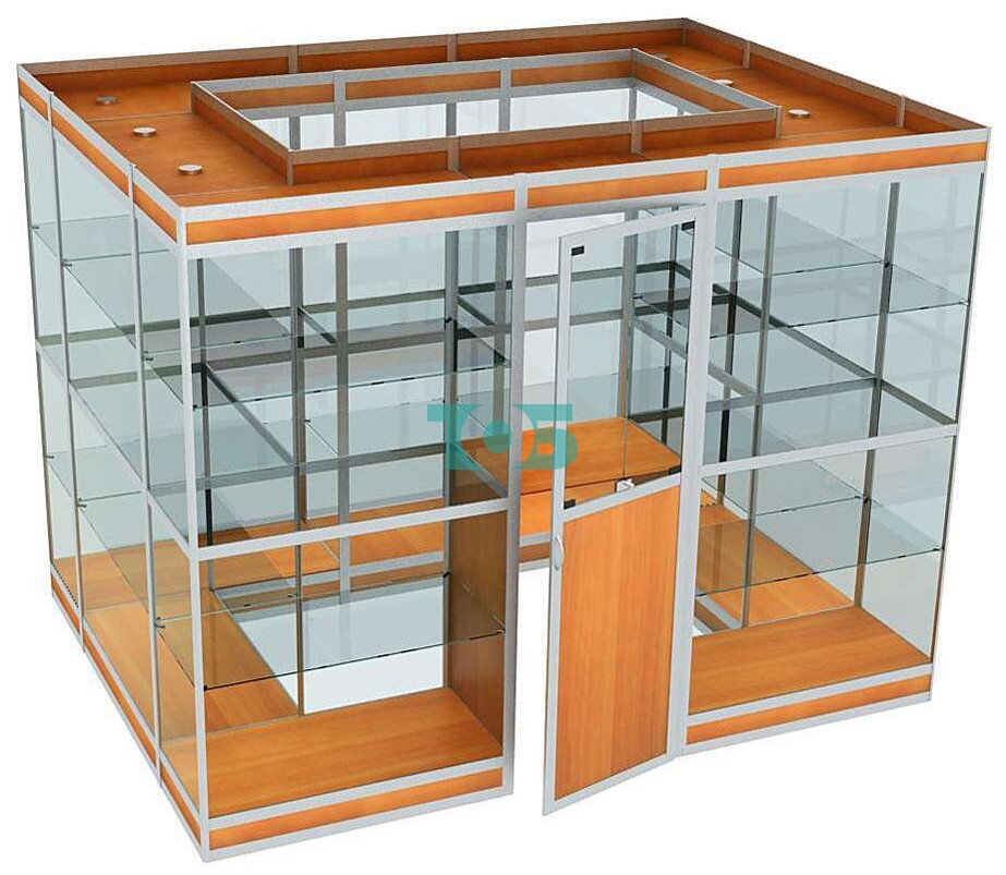 - Стеклянные дверки в распашной двери павильона, используемые в качестве окна выдачи.