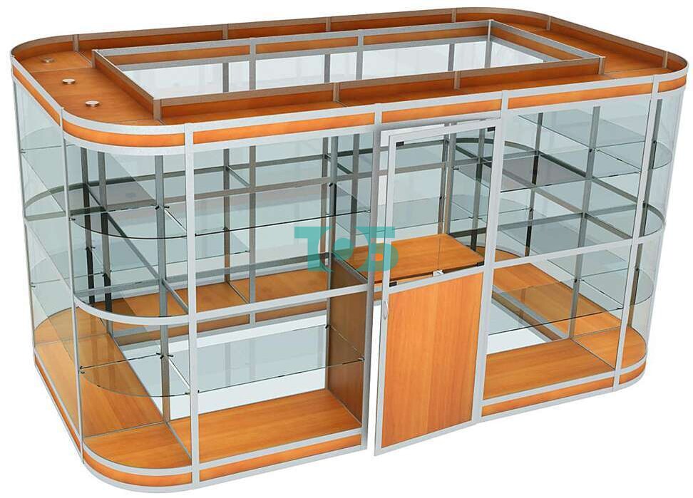 - Стеклянные дверки в распашной двери павильона, используемые в качестве окна выдачи.