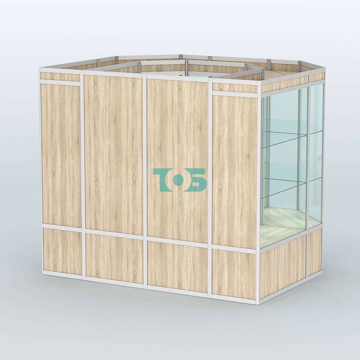 - Откидная крышка из ДСП 16мм под кассу, также имеются стеклянные дверки в распашной двери павильона, используемые в качестве окна выдачи.