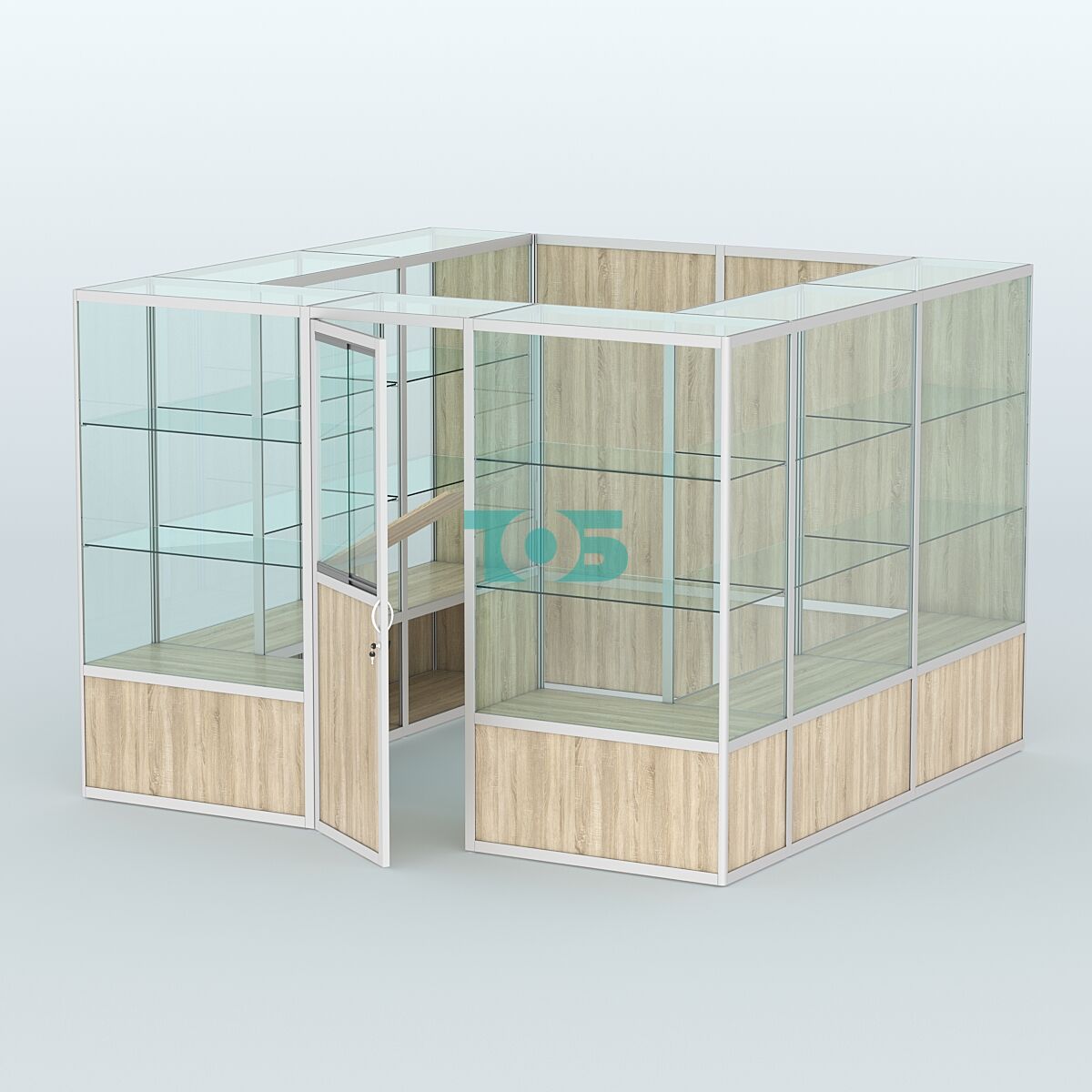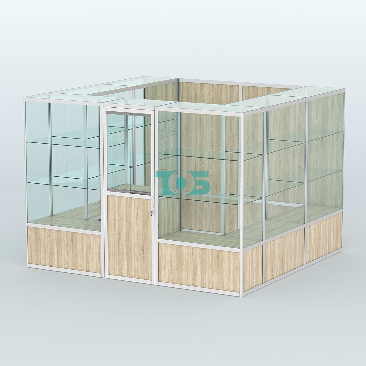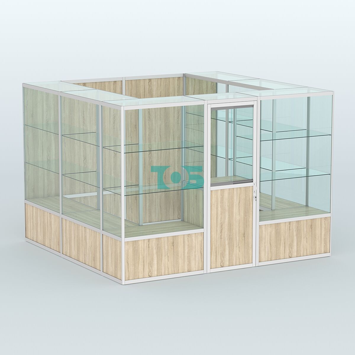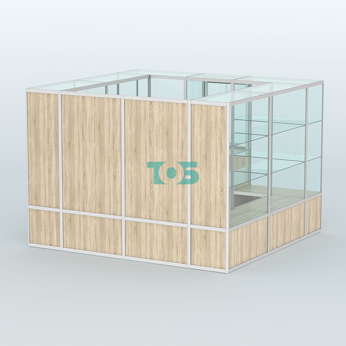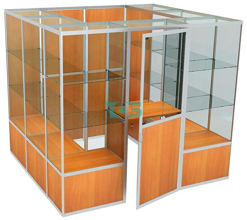Форма: прямоугольная с глухой задней стенкой, что придаёт павильону строгий и лаконичный вид.