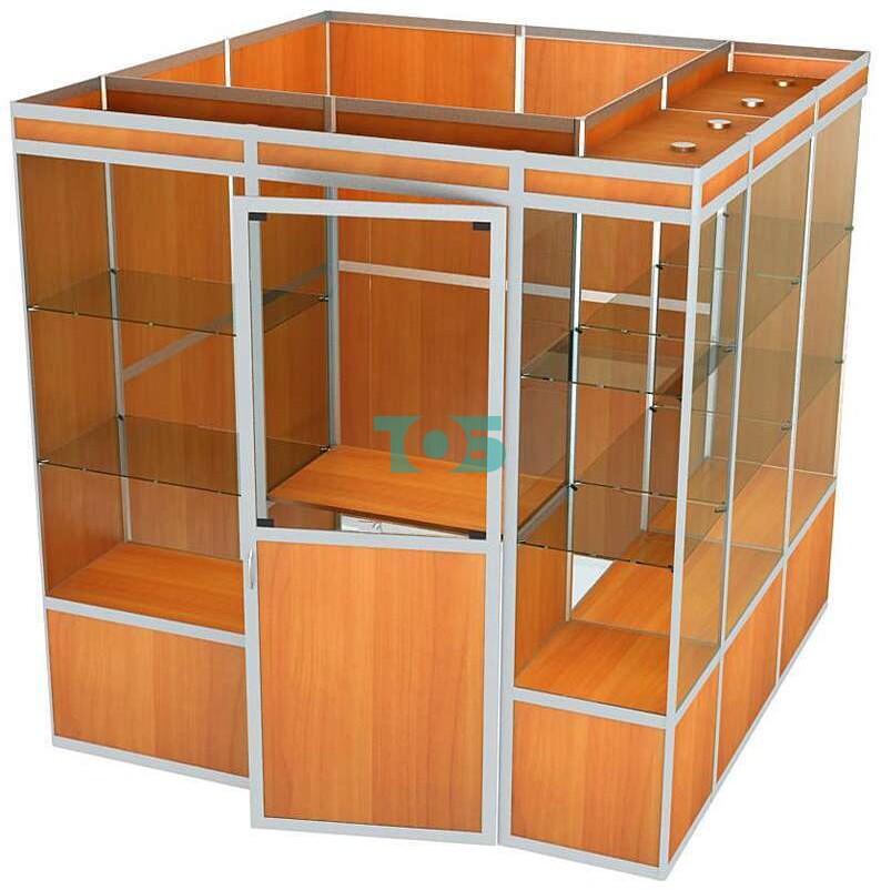 - Стеклянные дверки в распашной двери павильона, используемые в качестве окна выдачи.