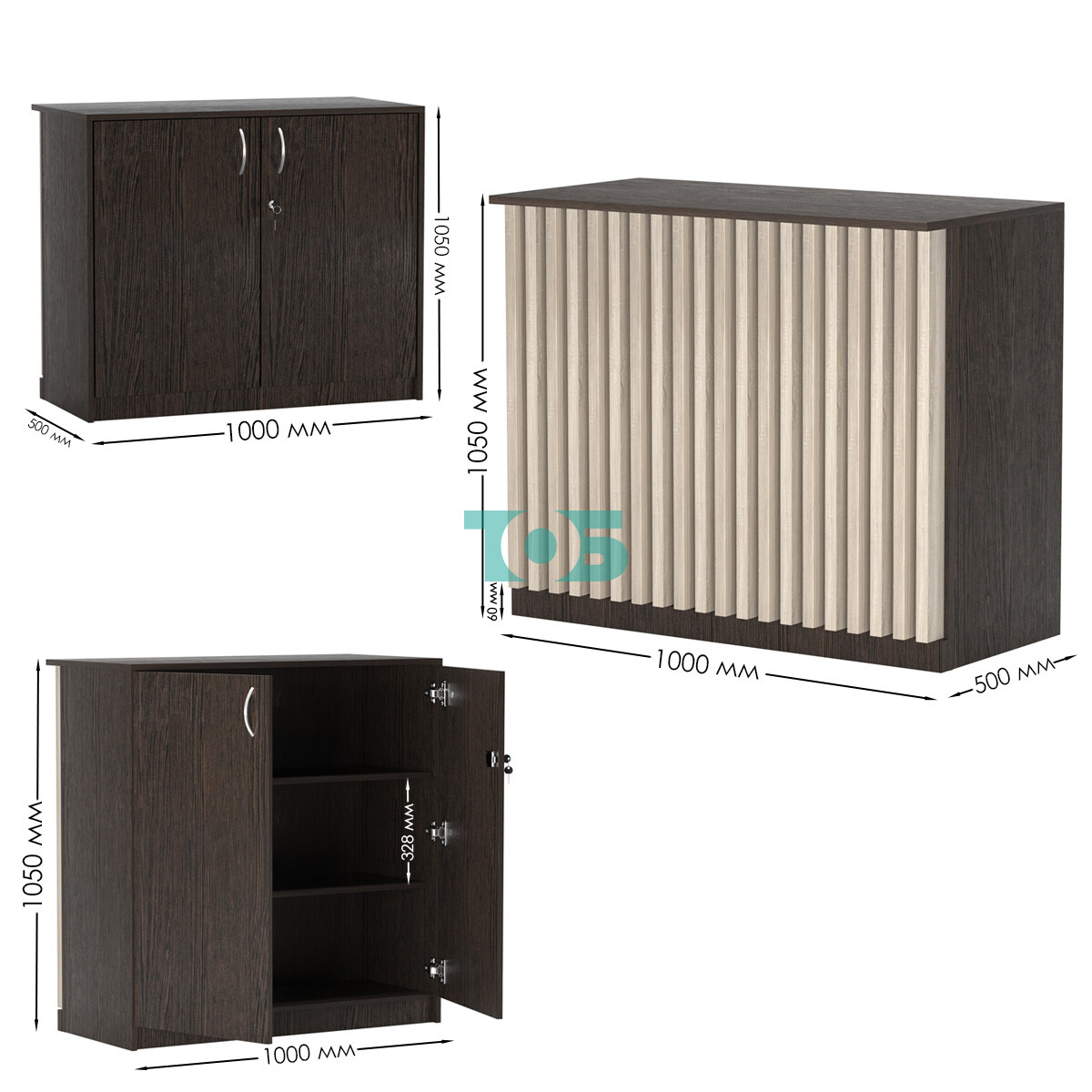 Со стороны продавца прилавок укомплектован двумя полками и распашными дверками с врезным замком.
