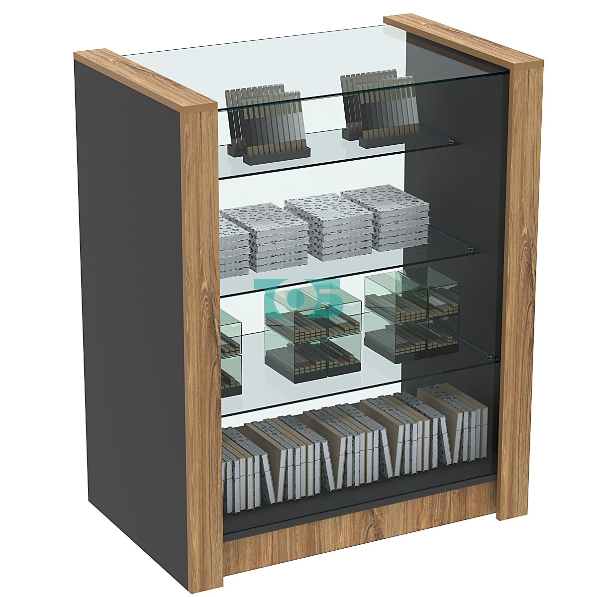 Открытая сторона для продавца: со стороны продавца прилавок открыт, что обеспечивает удобный доступ к товарам и облегчает взаимодействие с покупателями.