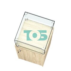 - верх - стеклянный, высотой 300 мм, на хромированных уголках;