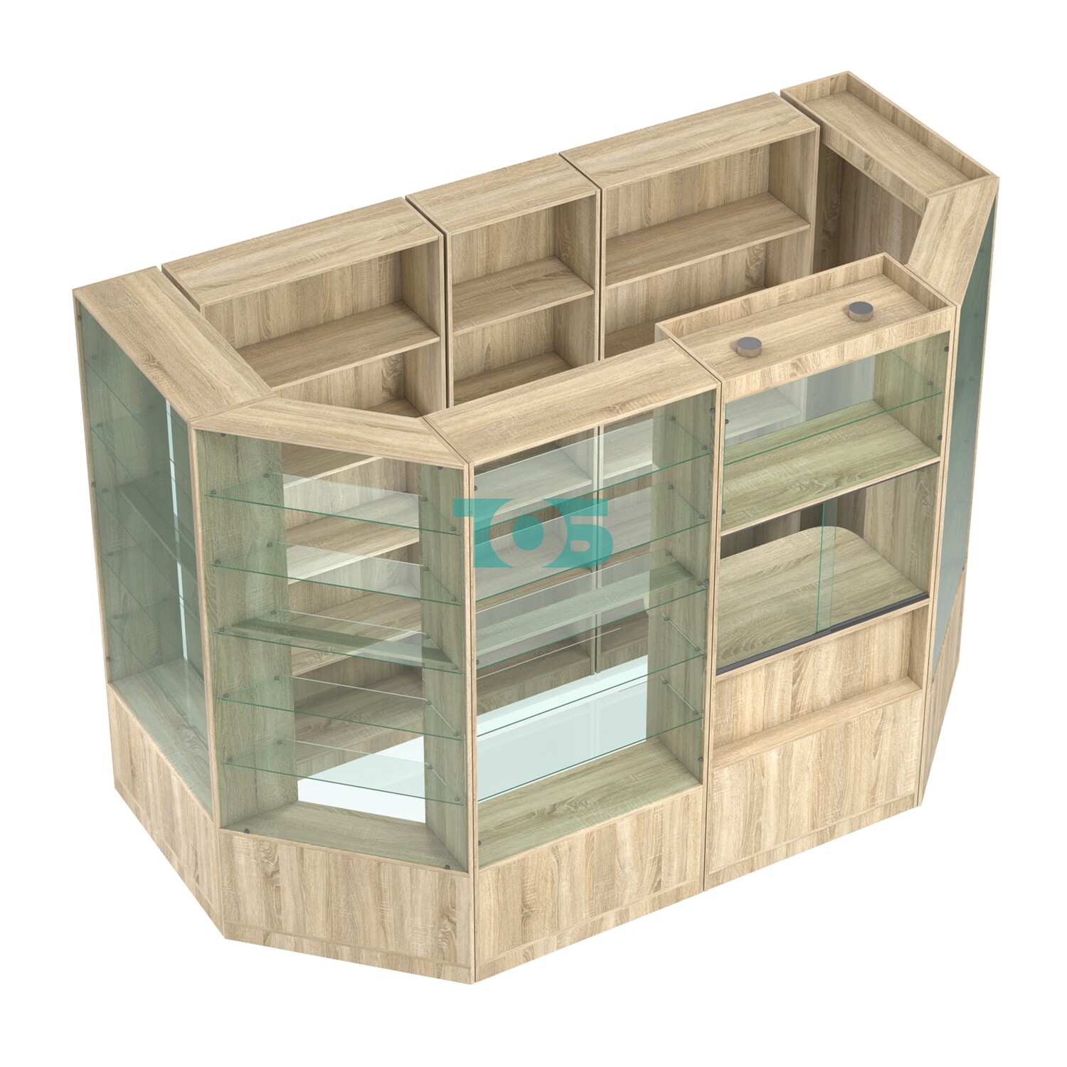 Витрина-прилавок: для общения между покупателем и продавцом установлена витрина-прилавок с раздвижными стёклами, что способствует удобному взаимодействию.