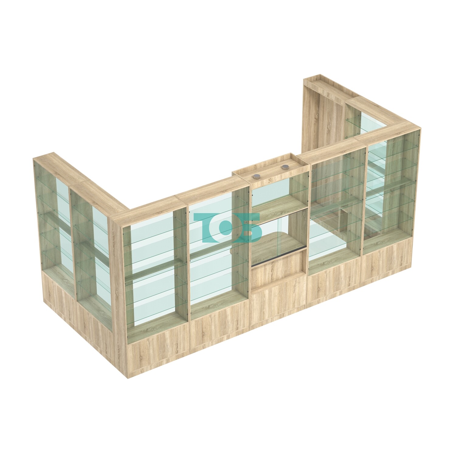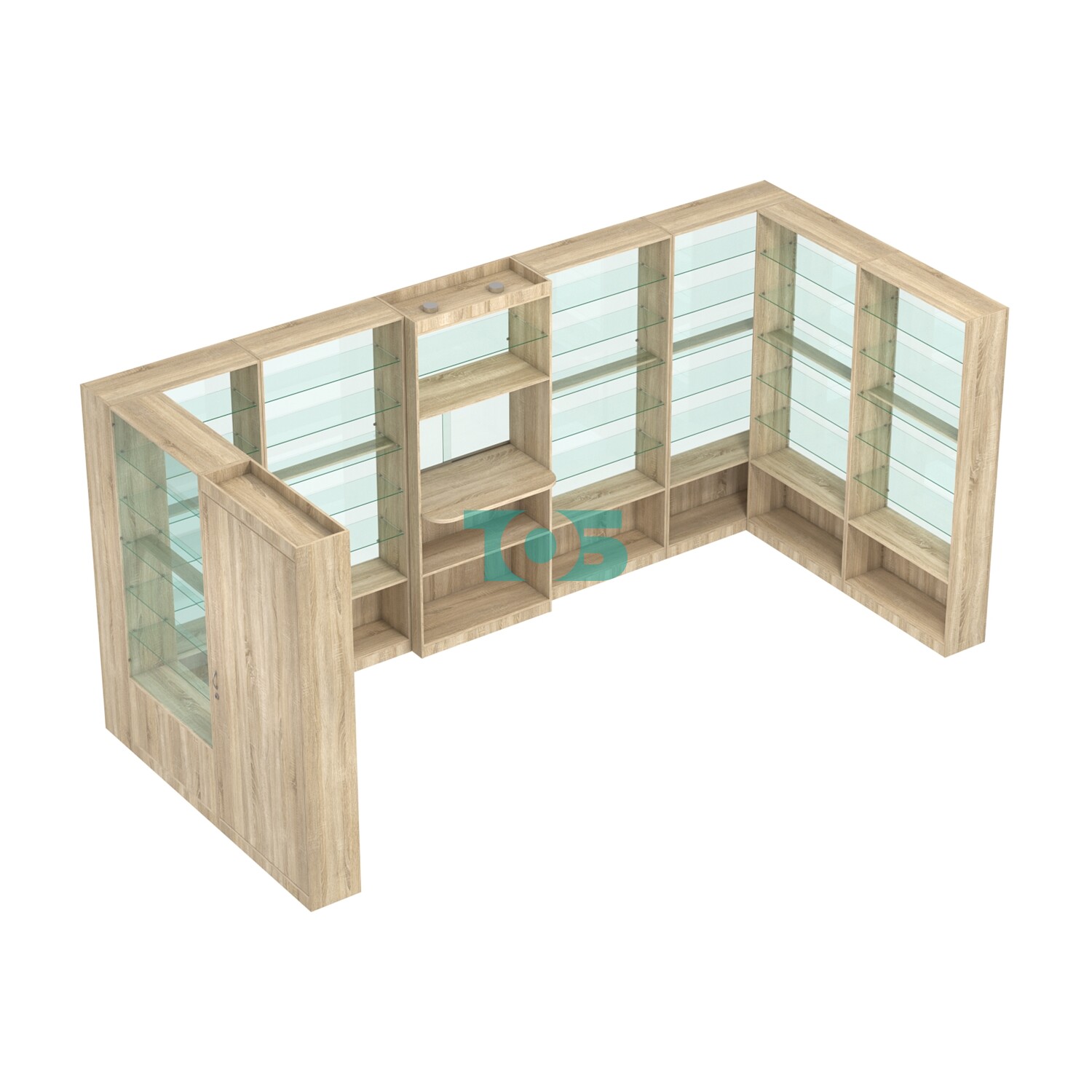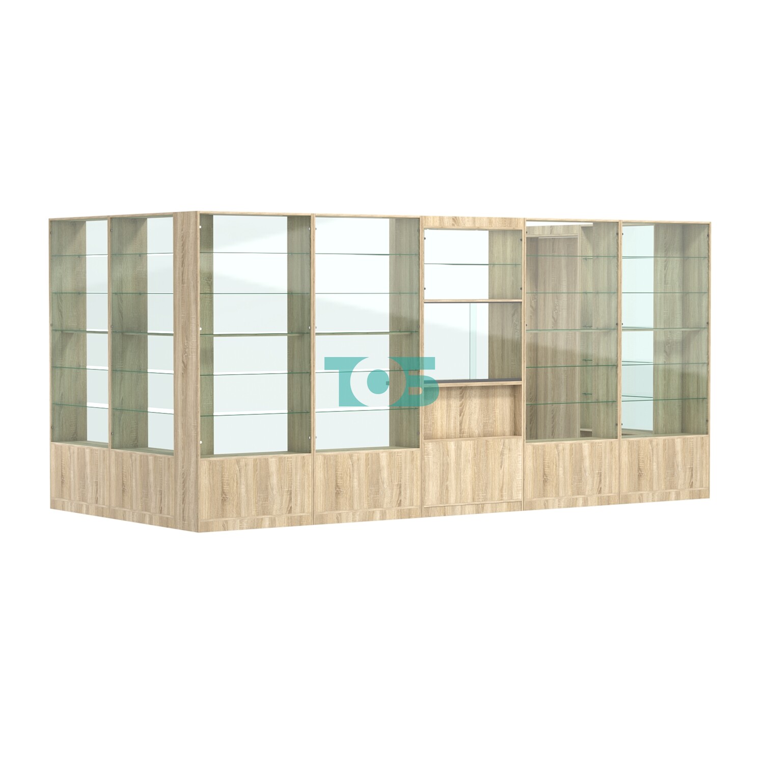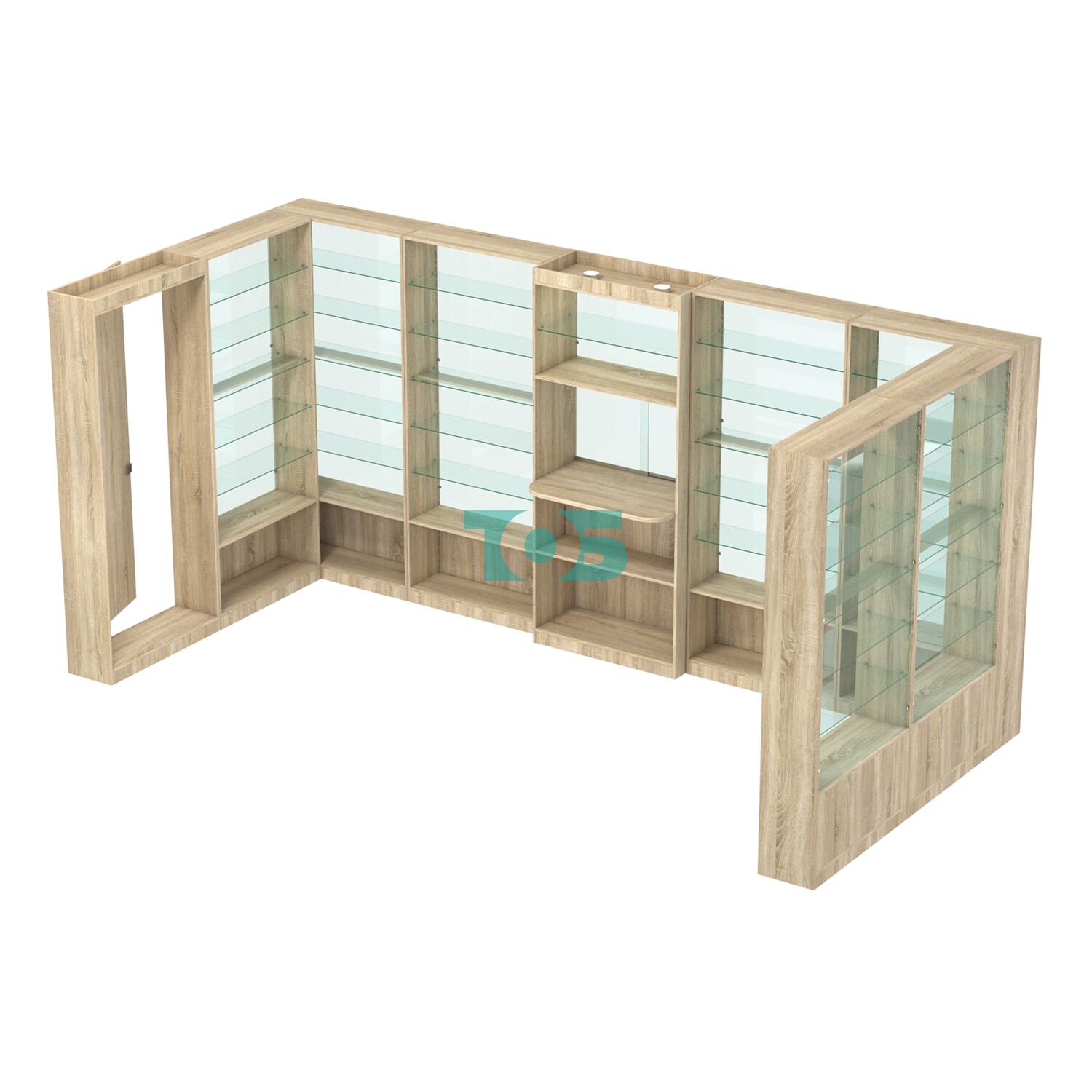 Полки: в павильоне предусмотрены пять стеклянных полок с каждой стороны, что обеспечивает достаточно места для размещения товаров.