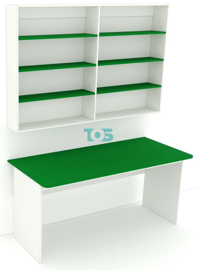 - хозяйственные столы для аптеки из ламинированного ДСП надежны и удобны в использовании. Столы для аптеки изготавливается из современных и качественных материалов и является самым необходимым модулем из аптечной торговой мебели. Стол укомплектован антресолью, которую можно повесить на стену либо закрепить на сам стол. Предназначен для использования в зоне продавца.