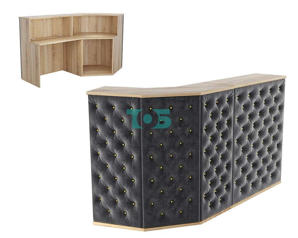Ресепшен Г-образный “БАРХАТ СЕРЫЙ ПЕРЛАМУТР №1” (карета золото) представляет собой воплощение роскоши и элегантности в современном интерьере. Этот предмет мебели сочетает в себе утонченный классический дизайн с элементами золотого декора, создавая впечатляющий и запоминающийся облик.