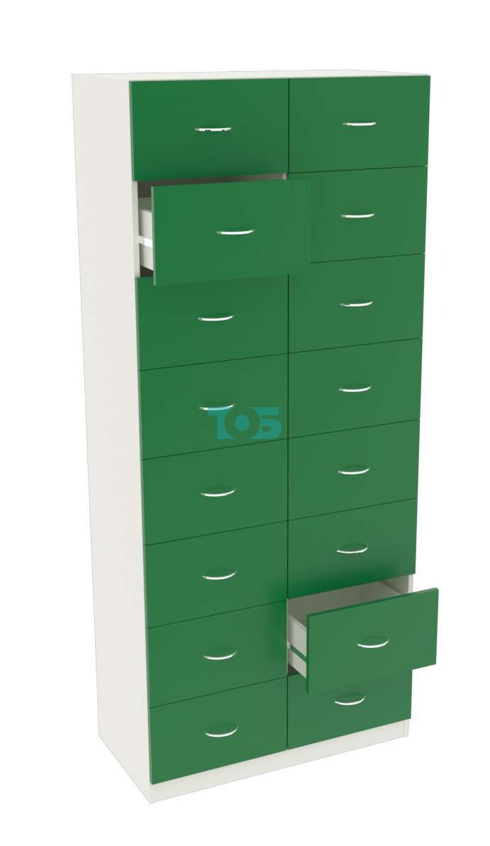 - шкаф для аптеки с выдвижными ящиками из ламинированного ДСП и стекла надежен и удобен в использовании. Он изготавливается из современных и качественных материалов и является самым необходимым модулем из аптечной торговой мебели. Шкаф для аптеки с выдвижными ящиками способен вмещать большой огромный ассортимент аптечного товара. Шкаф используется как модуль второй линии аптечного оборудования и находится в зоне Продавца;