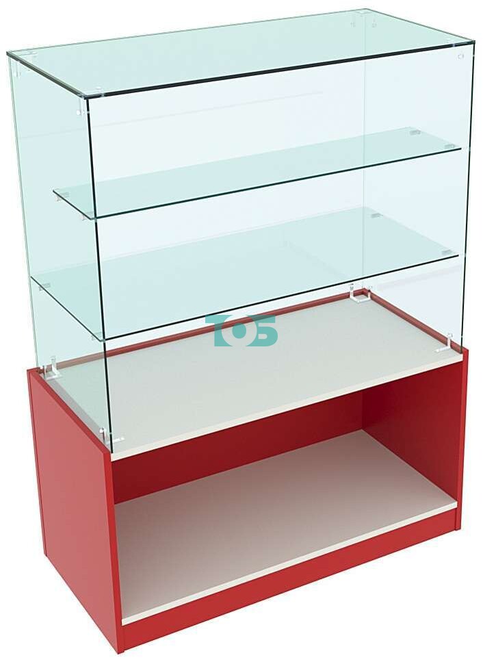 Отличия модели стеклянного высокого прилавка с крепежами для аптеки RED-СПИ-07: