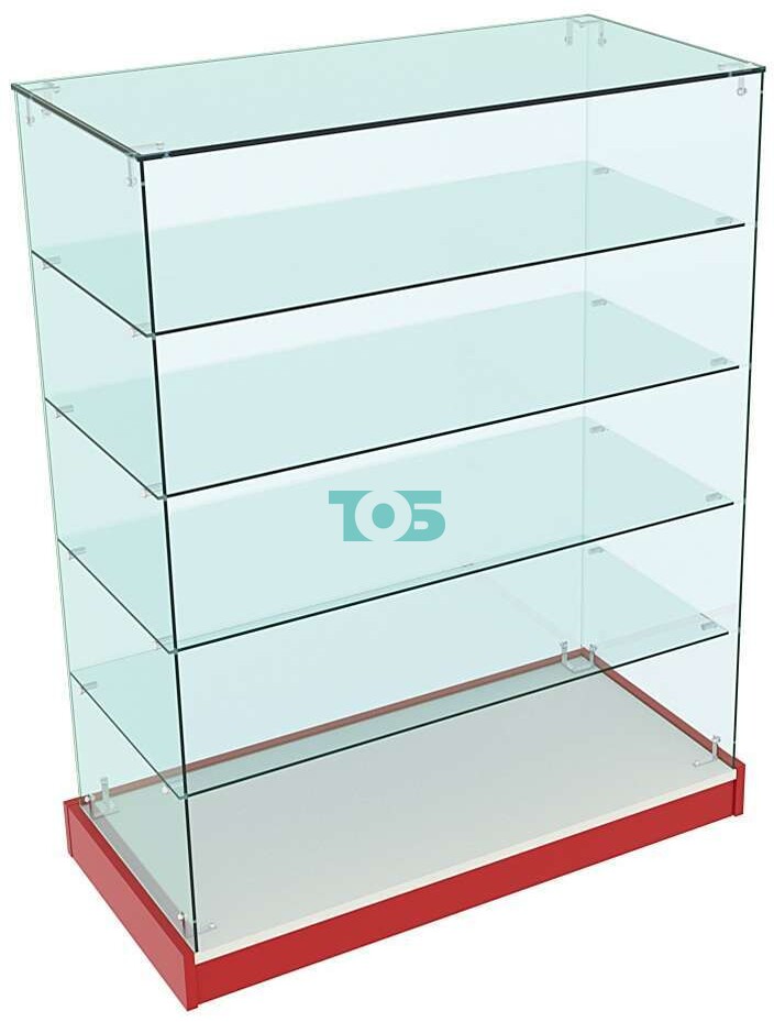 Отличия модели стеклянного высокого прилавка с четырьмя прозрачными полками для аптеки RED-СПИ-29: