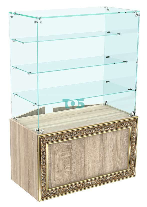 Отличия модели стеклянного торгового прилавка широкого с тремя полками и декором серии БАРОККО №БА-ВИ-201: