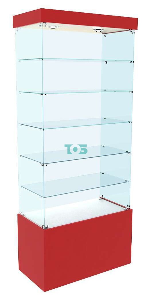 Отличия модели стеклянной витрины с прямоугольными полками для аптеки первой линии RED-601: